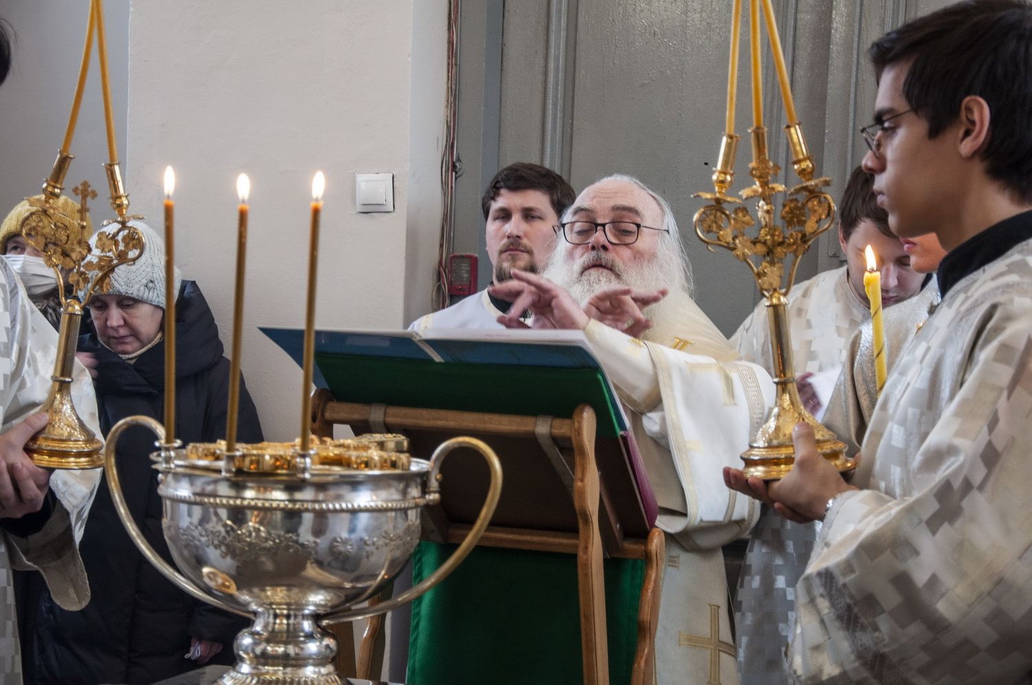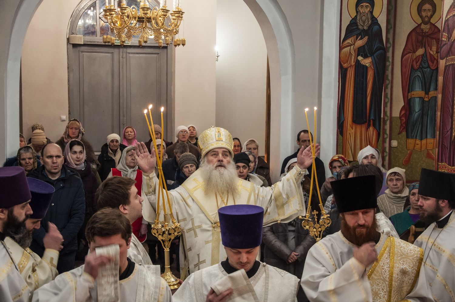 По завершении чтения митрополит Сергий возглавил служение Божественной литургии по чину святителя Василия Великого. Правящему архиерею сослужили настоятель храма протоиерей Андрей Басов, иеромонах Павел (Журавлев), иерей Сергий Никандров, иерей Николай Носков, диакон Олег Берендеев, иеродиакон Даниил (Лыков), диакон Сергий Соколов и другие.