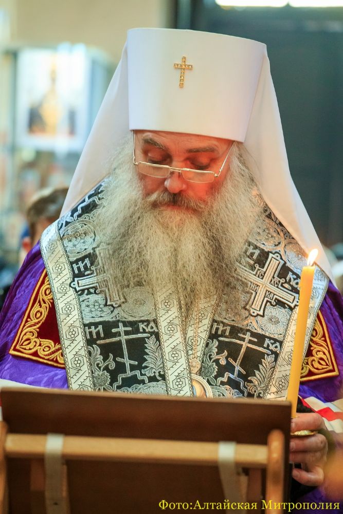 16 марта, в среду первой седмицы Великого Поста Высокопреосвященнейший Владыка Сергий Митрополит Барнаульский и Алтайский совершил Великое повечерие с чтением Великого покаянного канона преподобного Андрея Критского в Александро-Невском соборе г.Барнаула.