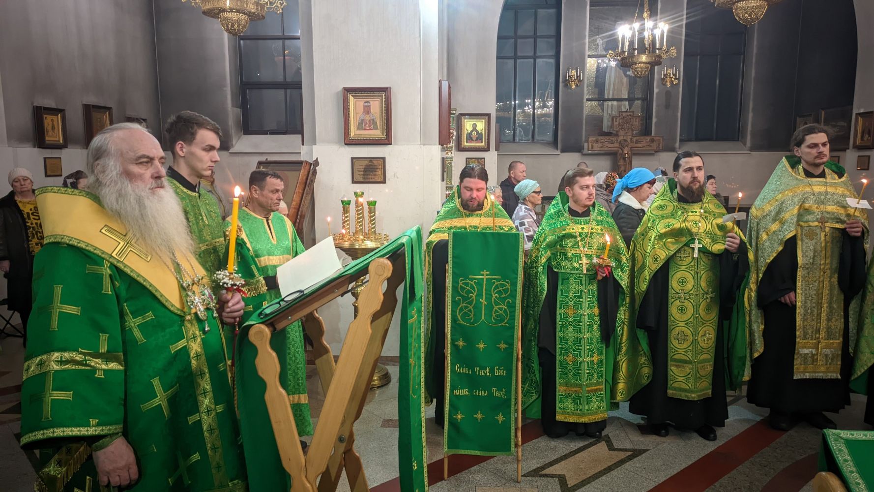 Его Высокопреосвященству сослужили благочинный Барнаульского городского округа и настоятель Александро-Невского Собора г. Барнаула протоиерей Андрей Басов, благочинный Барнаульского пригородного округа и ключарь храма святителя Николая Чудотворца г. Барнаула иерей Дионисий Рейм, ключарь храма Димитрия Ростовского г. Барнаула иеромонах Павел Журавлев, руководитель службы протокола иерей Олег Берендеев, иерей Михаил Кондратюк, иерей Вадим Гамов, иерей Николай Володин, иерей Александр Киктенко, диакон Олег Вихлянов и диакон Сергий Соколов и духовенство собора.