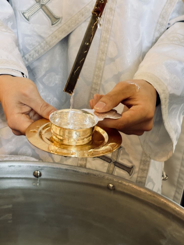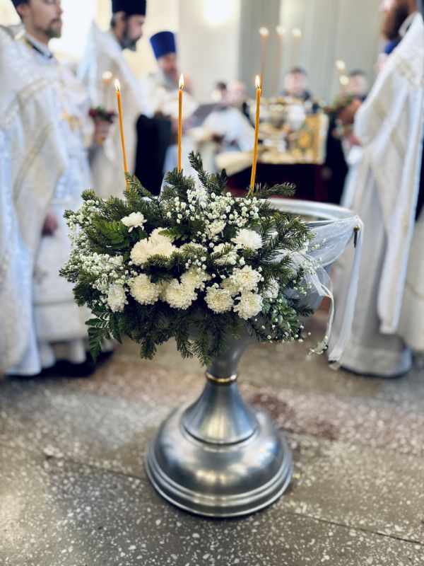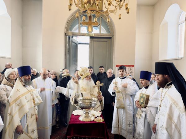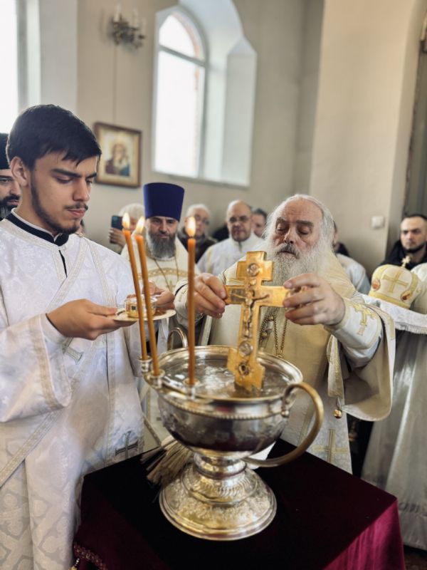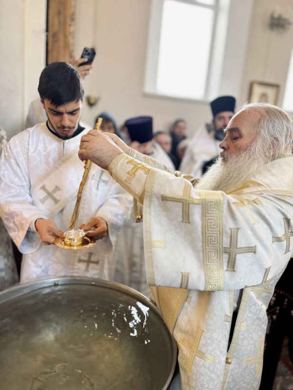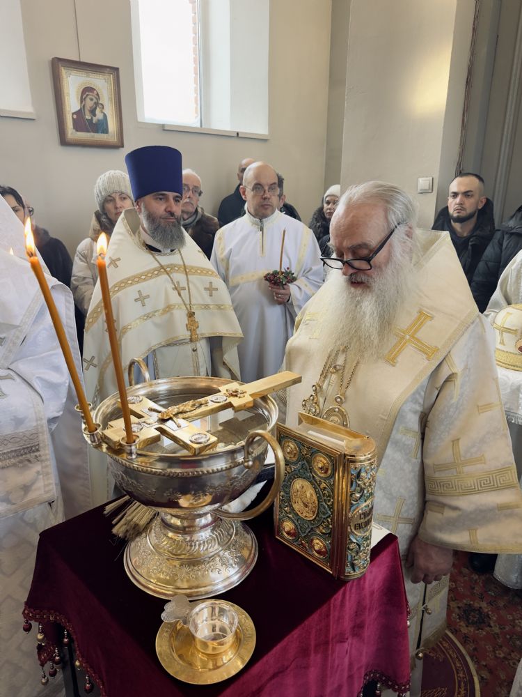 По окончании Литургии состоялась великая вечерня, в конце которой под пение тропаря «Глас Господень на водах» священнослужители вышли в центр храма, где глава митрополии совершил великое освящение воды.