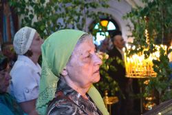 Сразу после Литургии была отслужена Великая вечерня с пением великого прокимна и чтением трех коленопреклоненных молитв: первая молитва – Богу Отцу, вторая – Господу Иисусу Христу о нас грешных, на земле живущих, третья – Господу Иисусу Христу об усопших в вере наших братьях. В этот день впервые после Пасхи читалась молитва «Царю Небесный»