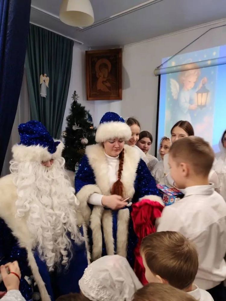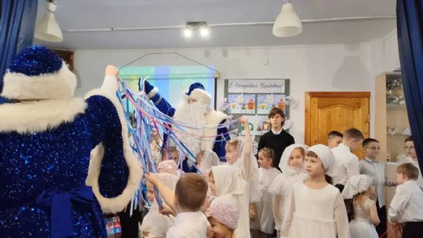 Поздравить воспитанников с Рождением Спасителя прибыл духовник воскресной школы иеромонах Даниил (Лыков). Отец Даниил вручил детям сладкие подарки от лица Настоятеля Александро-Невского Собора.